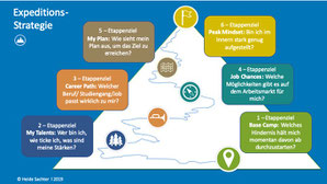 Gemeinsam gehen wir mit der Expeditions-Strategie von einem Etappenziel zum nächsten und schaffen damit eine solide Grundlage für Ihren weiteren beruflichen Weg und Ihre Karriere. Wir starten am Base Camp und Sie werden fachkundig durch die Etappenziele zum gesteckten Ziel navigiert.